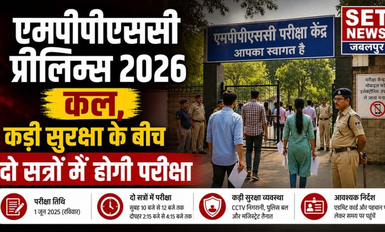 जबलपुर। मध्य प्रदेश लोक सेवा आयोग (MPPSC) द्वारा राज्य सेवा एवं राज्य वन सेवा प्रारंभिक परीक्षा-2026 का आयोजन कल रविवार 26 अप्रैल को किया जाएगा। परीक्षा को निष्पक्ष, पारदर्शी और व्यवस्थित ढंग से संपन्न कराने के लिए प्रशासन ने व्यापक तैयारियां पूरी कर ली हैं। इस बार सुरक्षा व्यवस्था को और सख्त करते हुए त्रिस्तरीय जांच प्रणाली लागू की गई है।