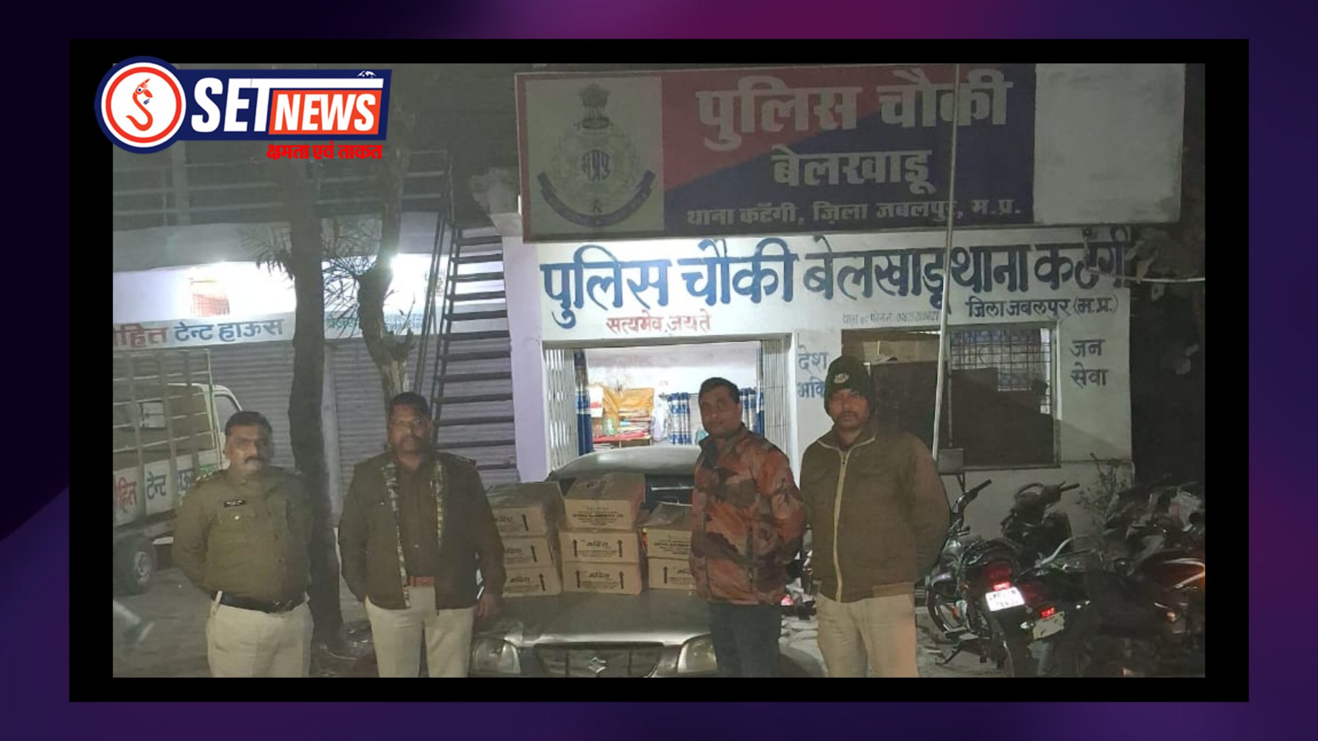 जबलपुर: अवैध रूप से कार मे परिवहन कर ले जायी जा रही 380 पाव देशी शराब कार सहित जप्त फरार चालक की तलाश