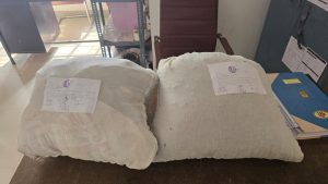 तलाशी लेने पर संदेही शिवम केशरवानी के पिट्ठू बैग जिसमें अंग्रेजी में अमेरिकन टूरिस्ट लिखा है खोलकर देखने पर 2 पैकेट में अवैध मादक पदार्थ गांजा रखा मिला, संदेही गोलू उर्फ अन्नू धुसिया के पास मिले काले रंग केे पिट्ठू बैग जिसमें अंग्रेजी में पोमा लिखा है खोलकर देखने पर 2 पेकेट मे अवैध मादक पदार्थ गांजा रखा मिला, संदेही रूपेश कुमार रैकवार के कब्जे में रखे हाथ थैला में 2 पेकेट में अवैध मादक पदार्थ गांजा रखा मिला, संदेही वेदांश उर्फ बटुक अवस्थी के पास रखे पीले रंग के कंबल में 1 पेकेट में अवैध मादक पदार्थ गांजा रखा मिला, चारों संदेहियों के कब्जे से मिले 7 पेकेट कें अवैध मादक पदार्थ गांजा को एनडीपीएस एक्ट के प्रावधानों के तहत कार्यवाही करते हुये तौल करने पर कुल 6 किलो 686 ग्राम गांजा कीमती लगभग 3 लाख 34 हजार रूपये होना पाया गया।