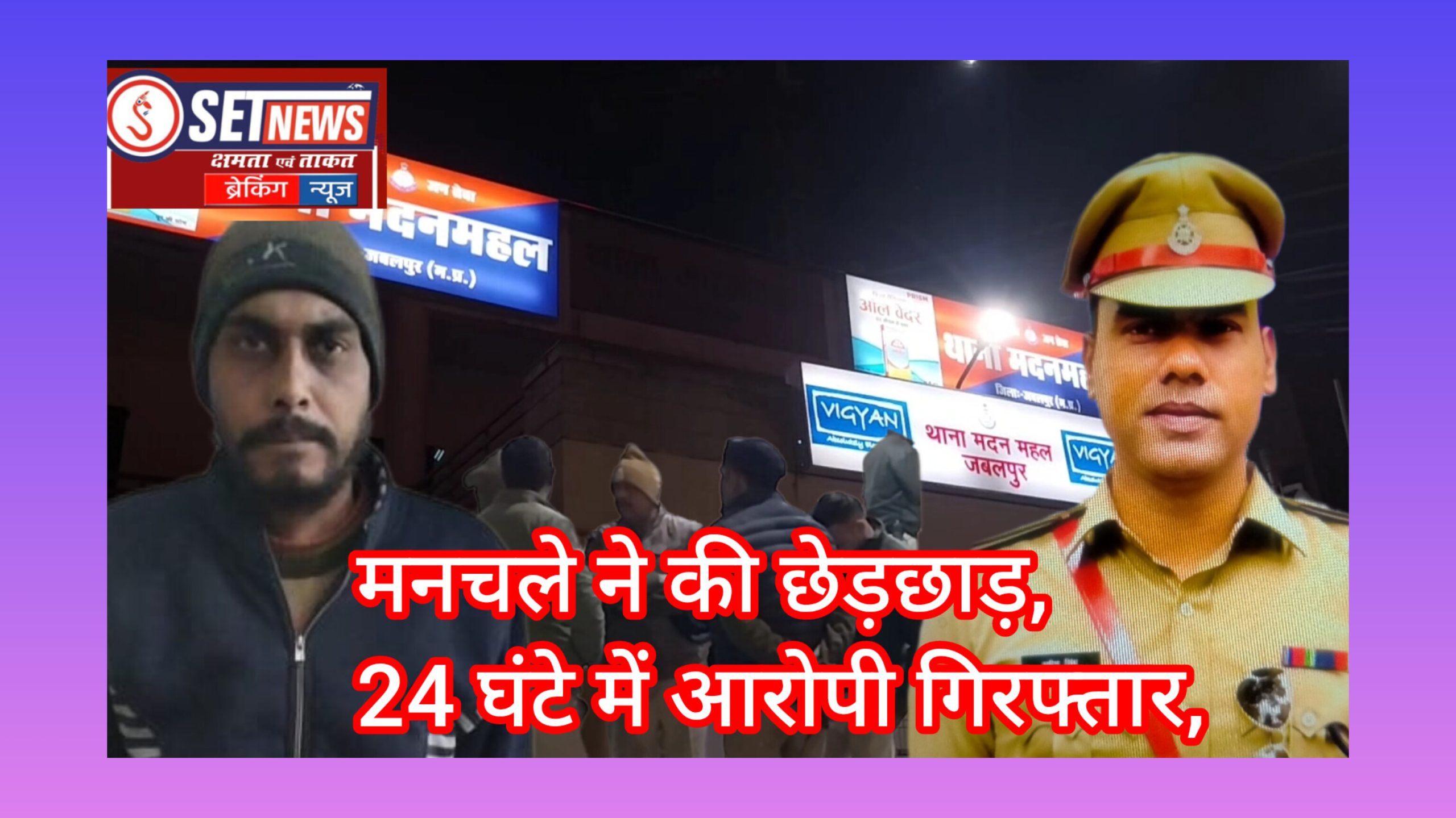 SET NEWE की खबर का असर,पकड़ा गया छेड़छाड़ करने वाले आज्ञात आरोपी,जबलपुर के मदन महल थानांतर्गत मदन महल के गेट नं 4 साई मंदिर के पास 12 जनवरी की सुबह 5.30 बजे हॉस्टल से घर जा रही सीएसपी रितेश कुमार शिव ने बताया की महिला के साथ छेड़छाड़ करने वाले आरोपी को पुलिस ने सरगर्मी से तलाश कर गिरफ्तार किया है।
