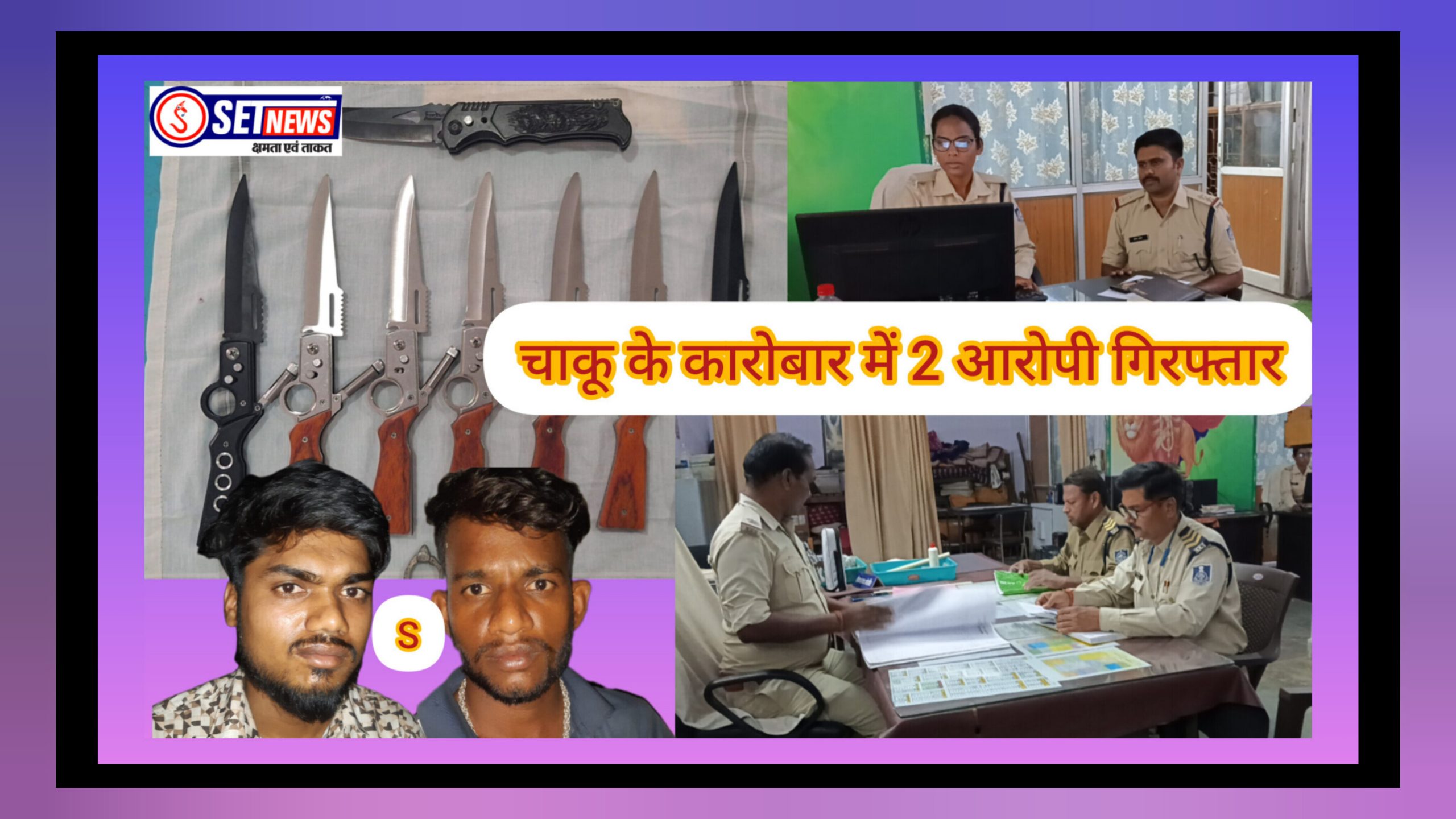 आदेश के परिपालन में अतिरिक्त पुलिस अधीक्षक शहर आनंद कलादगी अतिरिक्त पुलिस अधीक्षक यातायात/अपराध सोनाली दुबे तथा नगर पुलिस अधीक्षक कोतवाली रितेश कुमार शिव तथा नगर पुलिस अधीक्षक केण्ट/अपराध उदयभान बागरी के मार्गदर्शन में यादव कॉलोनी चौकी पुलिस के क्राईम ब्रांच की संयुक्त टीम द्वारा 2 आरोपियों को 8 चाकू सहित रंगे हाथ पकडा गया है।
