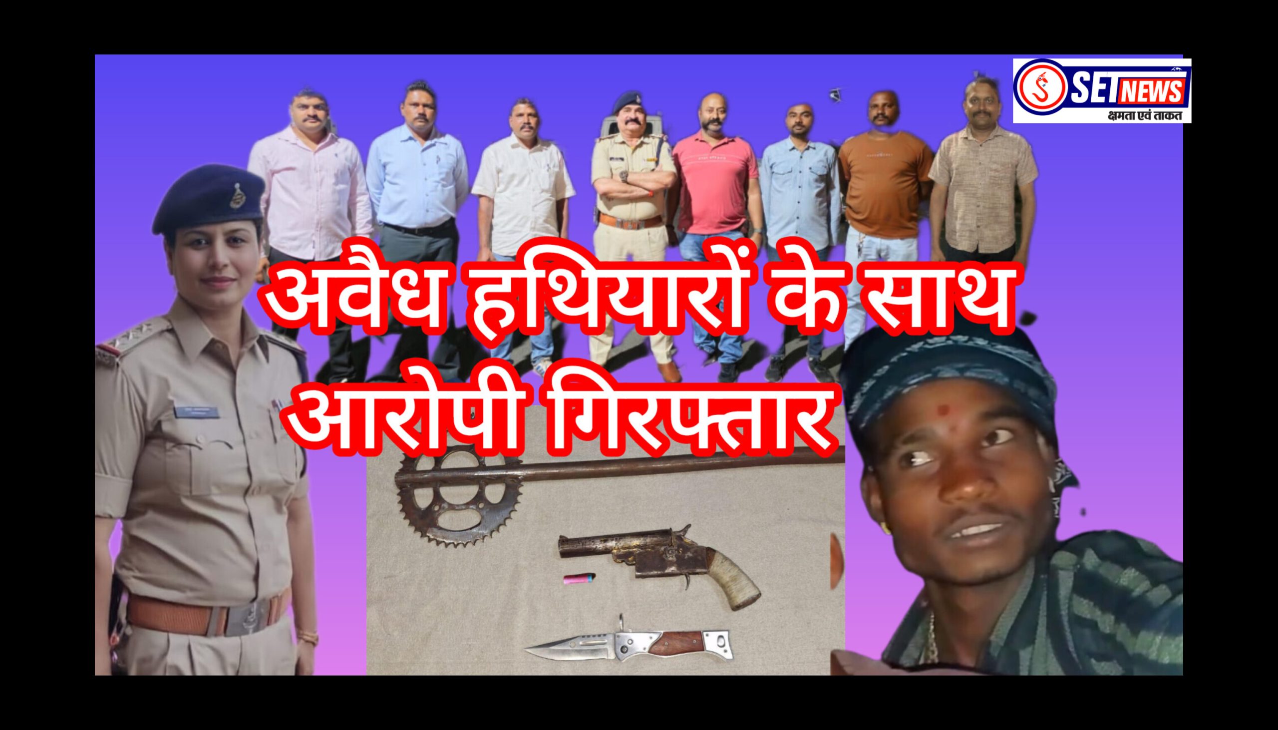 आदेश के परिपालन में अतिरिक्त पुलिस अधीक्षक ग्रामीण सूर्यकांत शर्मा एवं अति.पुलिस अधीक्षक अपराध सोनाली दुबे तथा एसडीओपी पाटन लोकेश डाबर के मार्गदर्शन में क्राईम ब्रांच एवं थाना कटंगी की टीम द्वारा 1 आरोपी को 1 कट्टा एवं 1 कारतूस तथा 1 चाकू, लोहे का हथ्ता सहित रंगे हाथ गिरफ्तार किया है।