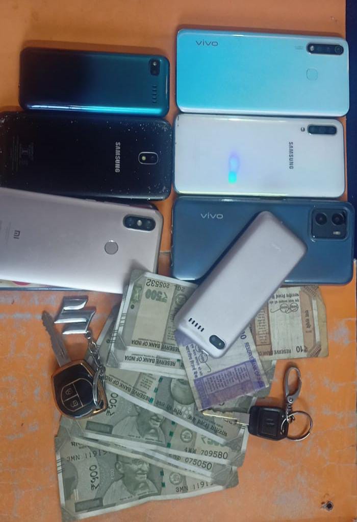 थाना माढ़ोताल में गुरूवार रात की रात्रि क्राईम ब्रांच को विश्वसनीय मुखबिर से सूचना मिली कि ग्रीन सिटी में एक व्यक्ति कार में घूम घूम कर आईपीएल सट्टा खिलवा रहा है सूचना पर क्राईम ब्रांच एवं थाना माढोताल की संयुक्त टीम द्वारा मुखबिर के बताये स्थान पर दबिश दी गई ग्रीनसिटी रोड में स्विफ्ट कार क्रमंाक एमपी 20 सीके 1938 के अंदर बैठे 2 व्यक्ति पुलिस केा देखकर कार लेकर भागने लगे जिनका पीछा कर घेराबंदी कर पकड़ा गया, नाम पता पूछने पर कार में बैठे व्यक्ति ने अपना नाम विक्रांत उर्फ राजू बुंदेला उम्र 52 वर्ष निवासी ग्रीनसिटी माढोताल तथा कार चालक ने नितिन ठाकुर उम्र 41 वर्ष निवासी त्रिमूर्तिनगर गोहलपुर बताया, जिन्हें सूचना से अवगत कराते पूछताछ करने पर पंजाब किंग्स एवं गुजरात टाईटन्स के बीच चल रहे 20-20 आईपीएल मैच पर राकेश निवासी पिपरिया होशंगाबाद से लाईन लेकर सट्टा खिलवाना स्वीकार किए, सटोरिए विक्रांत उर्फ राजू बुंदेला के कब्जे से 24 हजार 500 रूपये नगद, विभिन्न कम्पनियों के 6 मोबाइल, 1 कापी का पेज जिसमें लाखों का लगाई- खाई बाजी का हिसाब लिखा है एवं स्विफ्ट कार क्रमांक एमपी 20 सीके 1938 तथा आरोपी नितिन ठाकुर के कब्जे स 3500 रूपये, एमआई कम्पनी का मोबाइल, जप्त करते हुये आरोपी विक्रांत उर्फ राजू बुंदेला, नितिन ठाकुर एवं राकेश निवासी पिपरिया होशंगाबाद के विरूद्ध धारा 4(क) सट्टा एवं धारा 109 भादवि के तहत कार्यवाही की गई।