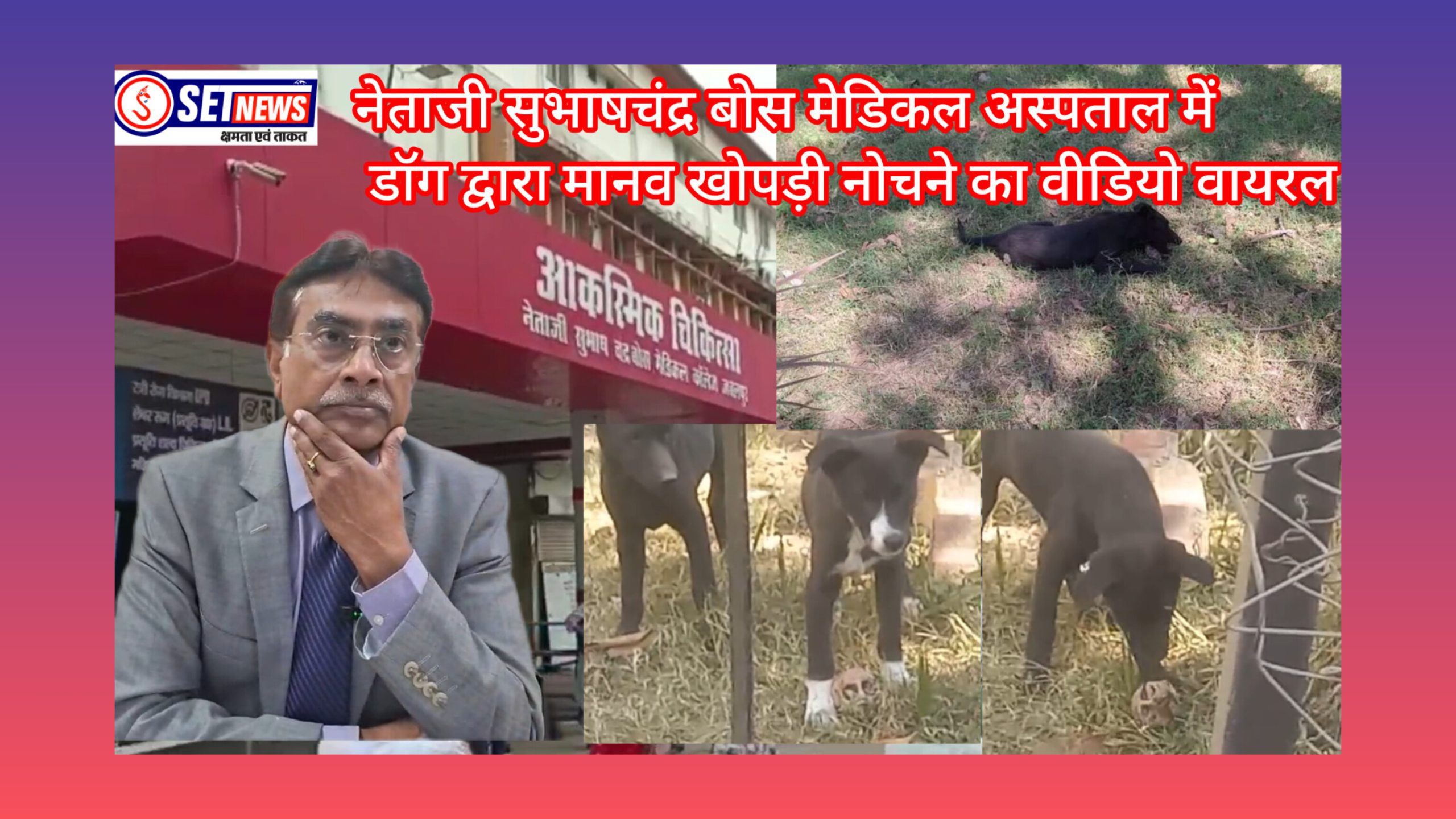 SET NEWS जबलपुर! नेताजी सुभाषचंद्र बोस मेडिकल अस्पताल के हॉस्टल नंबर एक के मैदान में आवारा कुत्तों द्वारा मानव खोपड़ी नोचने का वीडियो तेजी से वायरल हो रहा है। इस वीडियो में एक काले रंग का डॉग काफी देर तक खोपड़ी को मुंह में दबाए घूमता रहा, फिर उसे नोचने लगा। इस घटना के बाद पूरे मेडिकल कॉलेज परिसर में हड़कंप मच गया। प्रारंभिक जांच में दावा किया जा रहा है कि यह खोपड़ी बहुत पुरानी है और डॉग इसे पास के तालाब या किसी जलाशय से लेकर आया था।