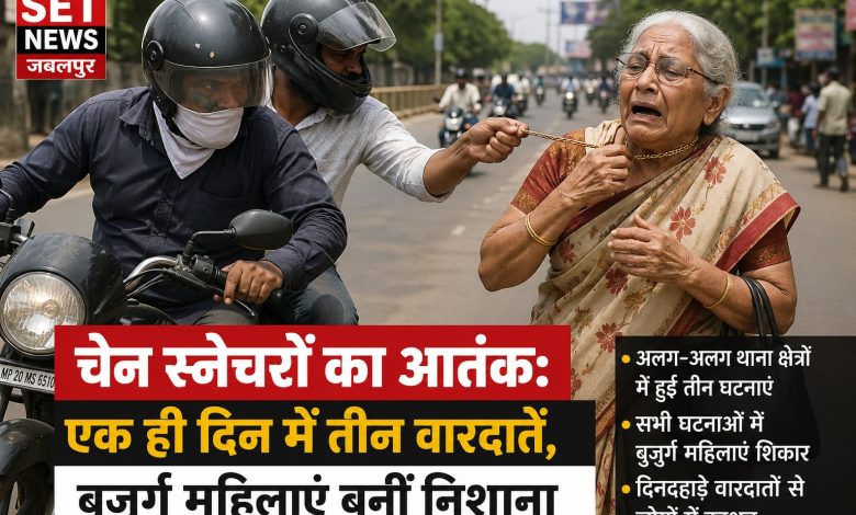 जबलपुर में तीन वारदात, एक दिन—जबलपुर पुलिस का बड़ा एक्शन: चेन स्नेचरों की धरपकड़ के लिए शहरभर में अलर्ट”