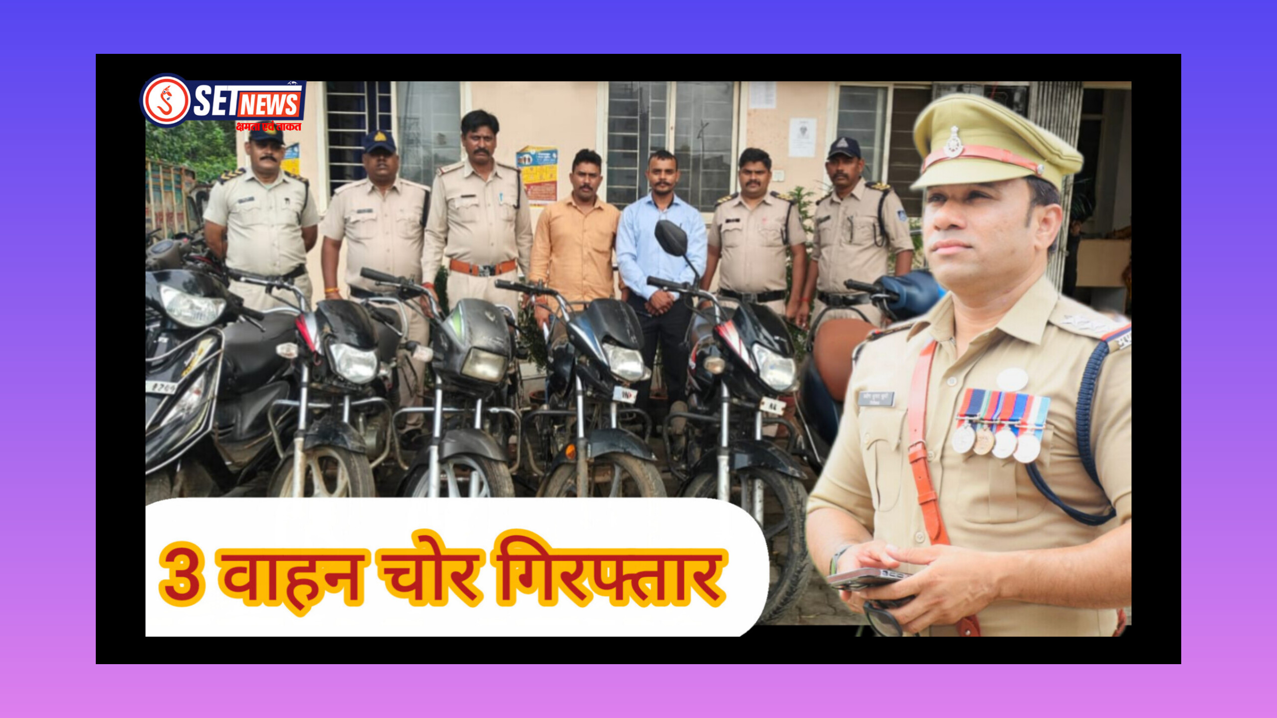 आदेश के परिपालन में अतिरिक्त पुलिस अधीक्षक क्राइम जितेंद्र सिंह एवं नगर पुलिस अधीक्षक आधारताल राजेश्वरी कौरव के मार्ग दर्शन मे थाना प्रभारी अधारताल प्रवीण कुमार कुमरे के नेतृत्व मे थाना अधारताल की टीम द्वारा 3 वाहन चोरों को गिरफ्तार कर चुराये हुये 06 दुपहिया वाहन कीमती लगभग 5 लाख रूपये के जप्त किये गये है।