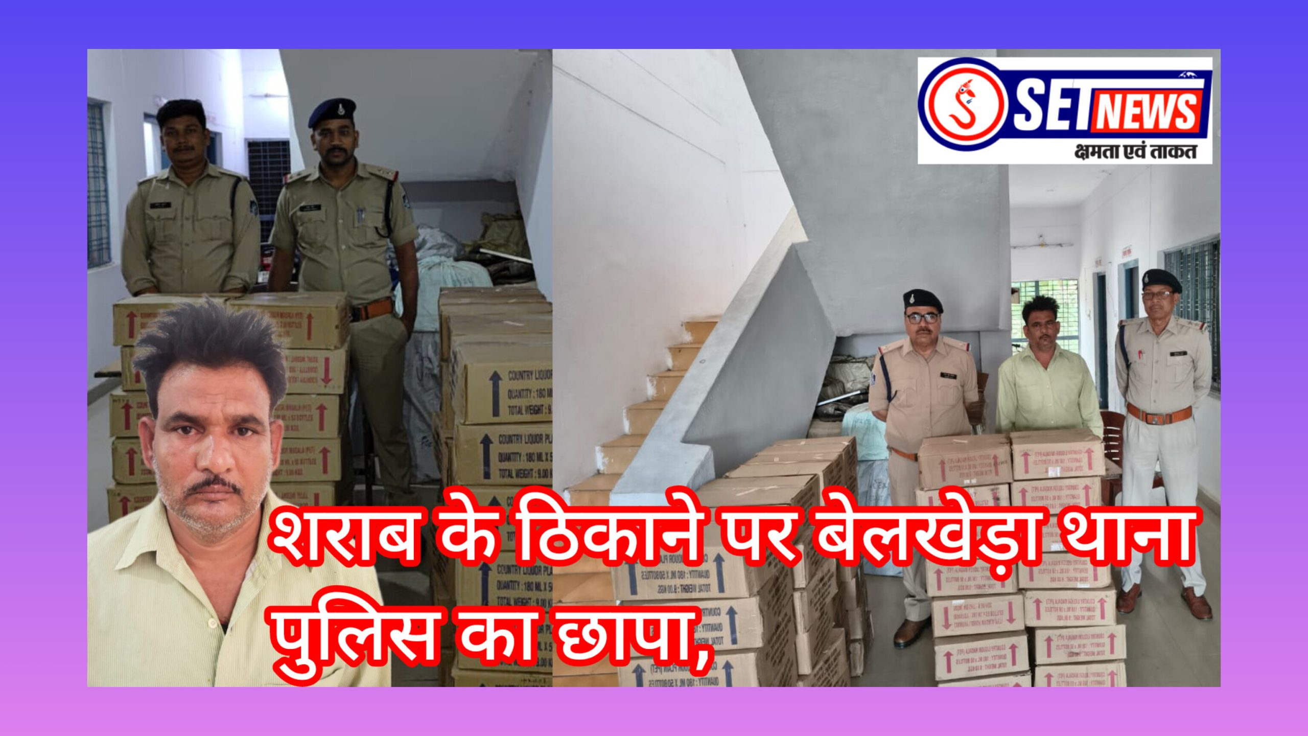 शराब के ठिकाने पर बेलखेड़ा थाना पुलिस का छापा, 41 पेटी देसी शराब जप्त,आरोपी गिरफ्तार