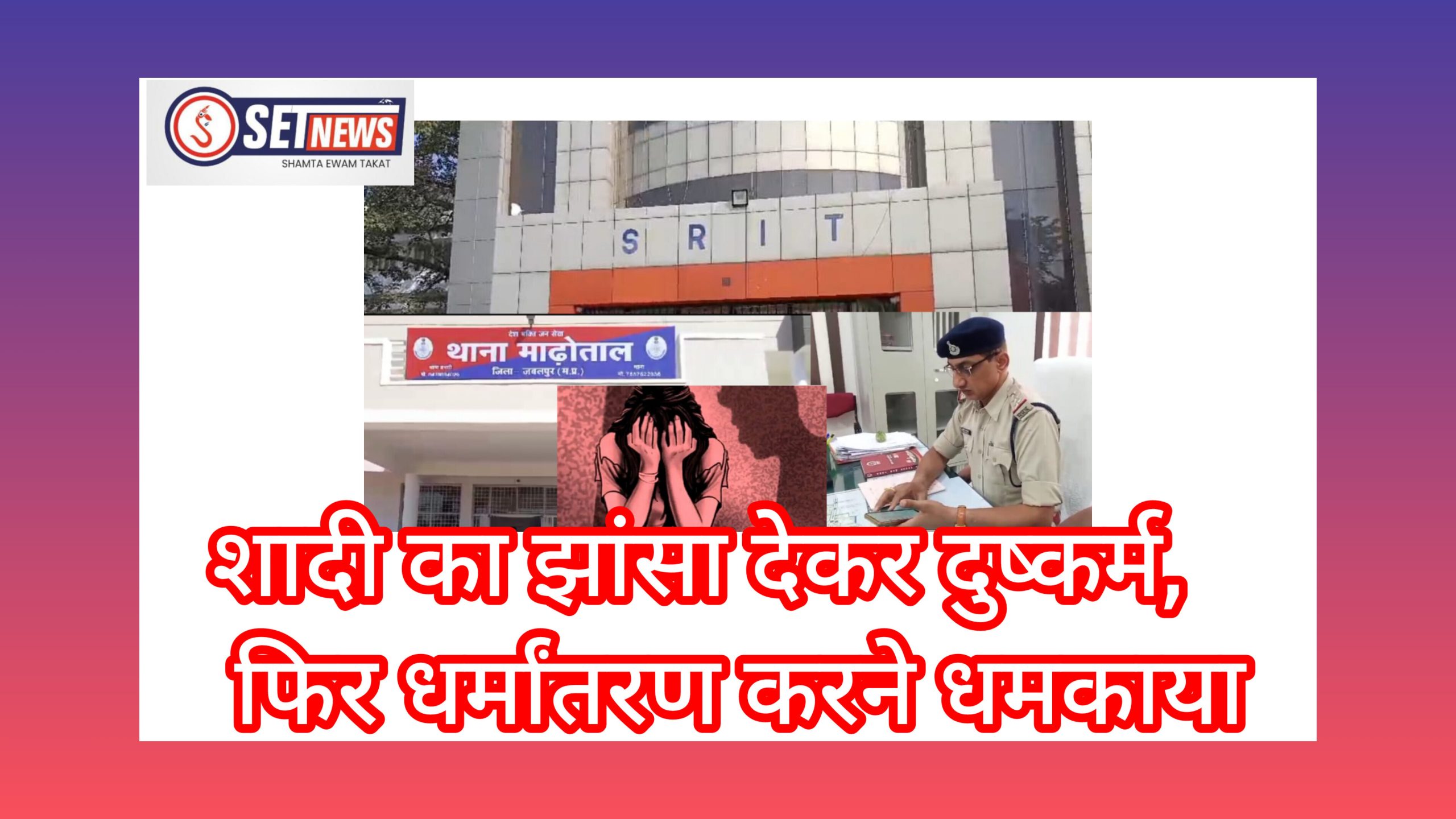SET NEWS जबलपुर। माढ़ोताल थाना अंतर्गत थर्ड फ्लोर पर रेप की घटना के बाद एक बार फिर श्री राम कॉलेज सुर्खियों में आ गया। इस बार श्रीराम कालेज के एक छात्र द्वारा ग्लोबल कॉलेज की एक छात्रा के साथ माढ़ोताल में दो वर्षों तक एक मकान में बलात्कार करता रहा। इतना ही नहीं आरोपी ने बलात्कार करने के बाद शादी करने के लिए युवती पर धर्मांतरण करने का दबाव भी बनाया। माढ़ोताल पुलिस ने पीड़िता की रिपोर्ट पर आरोपी के खिलाफ प्रकरण दर्ज कर आरोपी को गिरफ्तार कर लिया है।