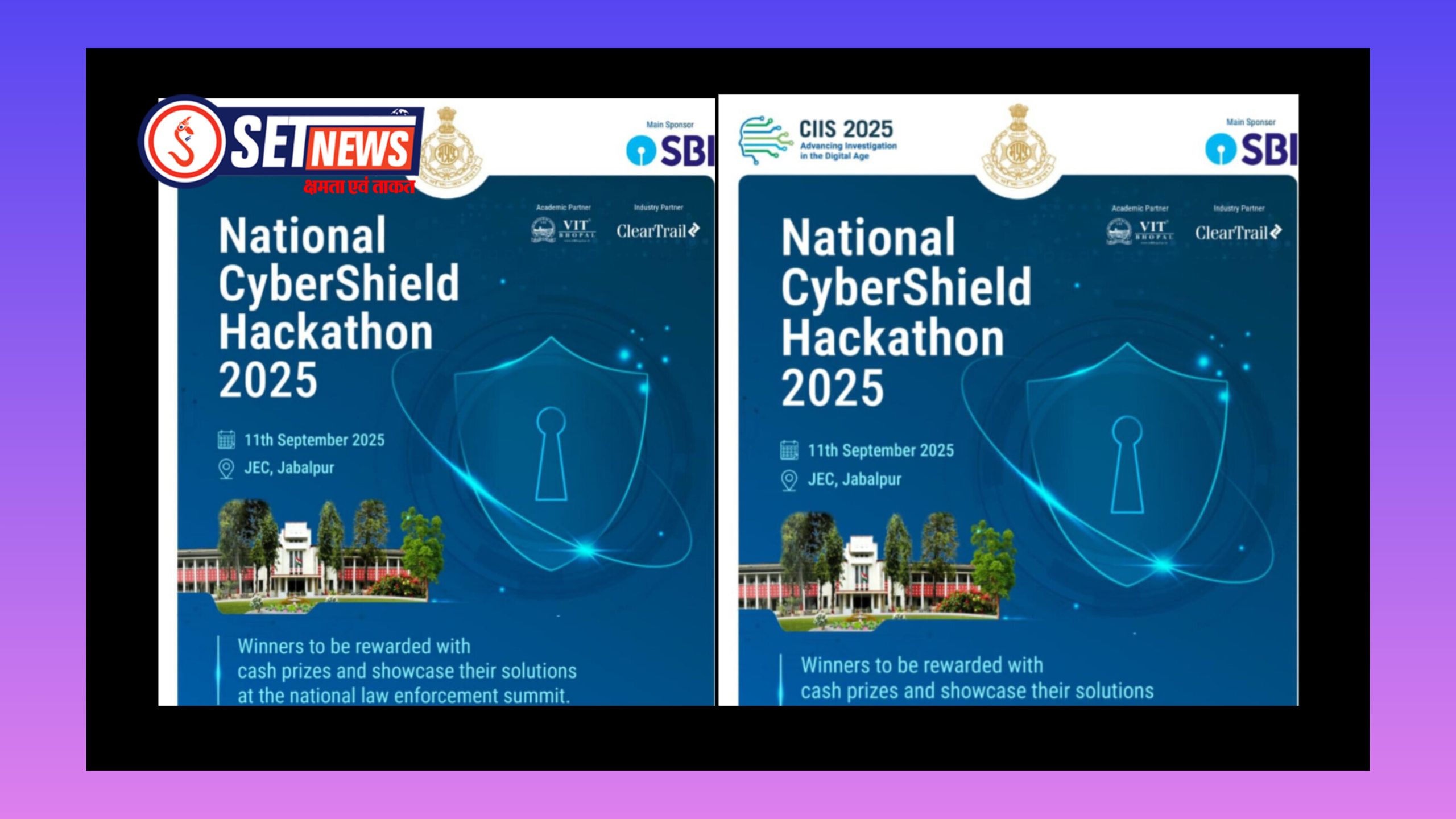 जबलपुर। मध्य प्रदेश पुलिस, राज्य साइबर मुख्यालय के तत्वावधान में भारतीय स्टेट बैंक और क्लियरट्रेल टेक्नोलॉजीज की साझेदारी से नेशनल साइबर शील्ड हैकाथोन 2025 का आयोजन 11 सितम्बर को जबलपुर इंजीनियरिंग कॉलेज में किया जाएगा। इस प्रतियोगिता का उद्देश्य साइबर अपराधों से निपटने के लिए तकनीकी समाधान खोजने में युवाओं की भागीदारी सुनिश्चित करना है। प्रतिभागी छात्र-छात्राएँ दिए गए प्रॉब्लम स्टेटमेंट्स पर आधारित सॉफ्टवेयर, एप्लिकेशन और तकनीकी प्रोटोटाइप विकसित करेंगे।