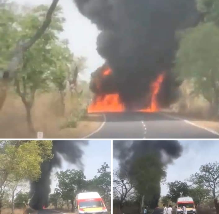 जबलपुर # स्टेट हाइवे पर टायरों से भरें ट्रक में लगी आग,