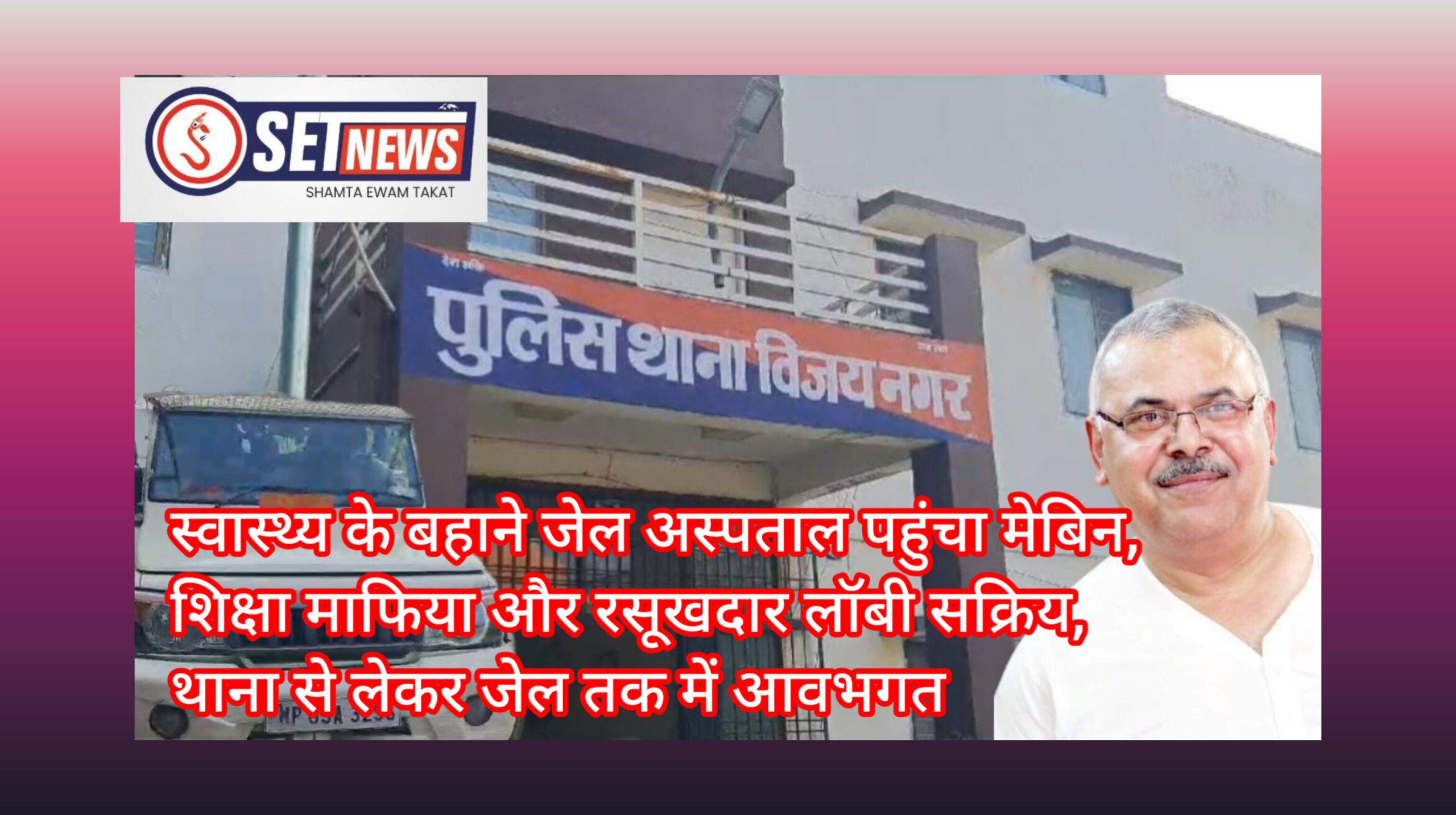SET NEWS जबलपुर ! विजय नगर के जॉय स्कूल में अवैध फीस वसूली मामले में आरोपों में घिरे जॉय स्कूल के संचालक अखिलेश मेबिन पर शिकंजा कसता जा रहा है। हालांकि रसूख और धनबल की शक्ति से रिमांड के दौरान विजय नगर थाना से लेकर जेल तक में आवभगत की वह तमाम सुविधाएं मिल रही है जिसका वह हकदार नहीं है। सूत्रों की माने तो पुलिस रिमांड के दौरान भी उसे विजय नगर पुलिस थाने में अतिथि सत्कार की तरह सुविधाएं मिली। वहीं जेल सूत्रों का दावा है कि मेबिन के स्वास्थ्य का हवाला देकर उन्हें जेल अस्पताल में भर्ती करा दिया है। सूत्रों का कहना है कि कुछ सियासतदार उसकी मदद करने में भी जुट गए है जो समय-समय पर उससे उपकृत हुए हैं। यह मामला अब केवल अवैध फीस वसूली तक सीमित नहीं रह गया है, बल्कि इसमें लग्जरी कारों, करोड़ों के फंड के हेरफेर, जेडीए से नियम कायदों से खिलवाड़ से लेकर एक पत्रकार पर हमले तक के आरोप शामिल हो गए हैं।