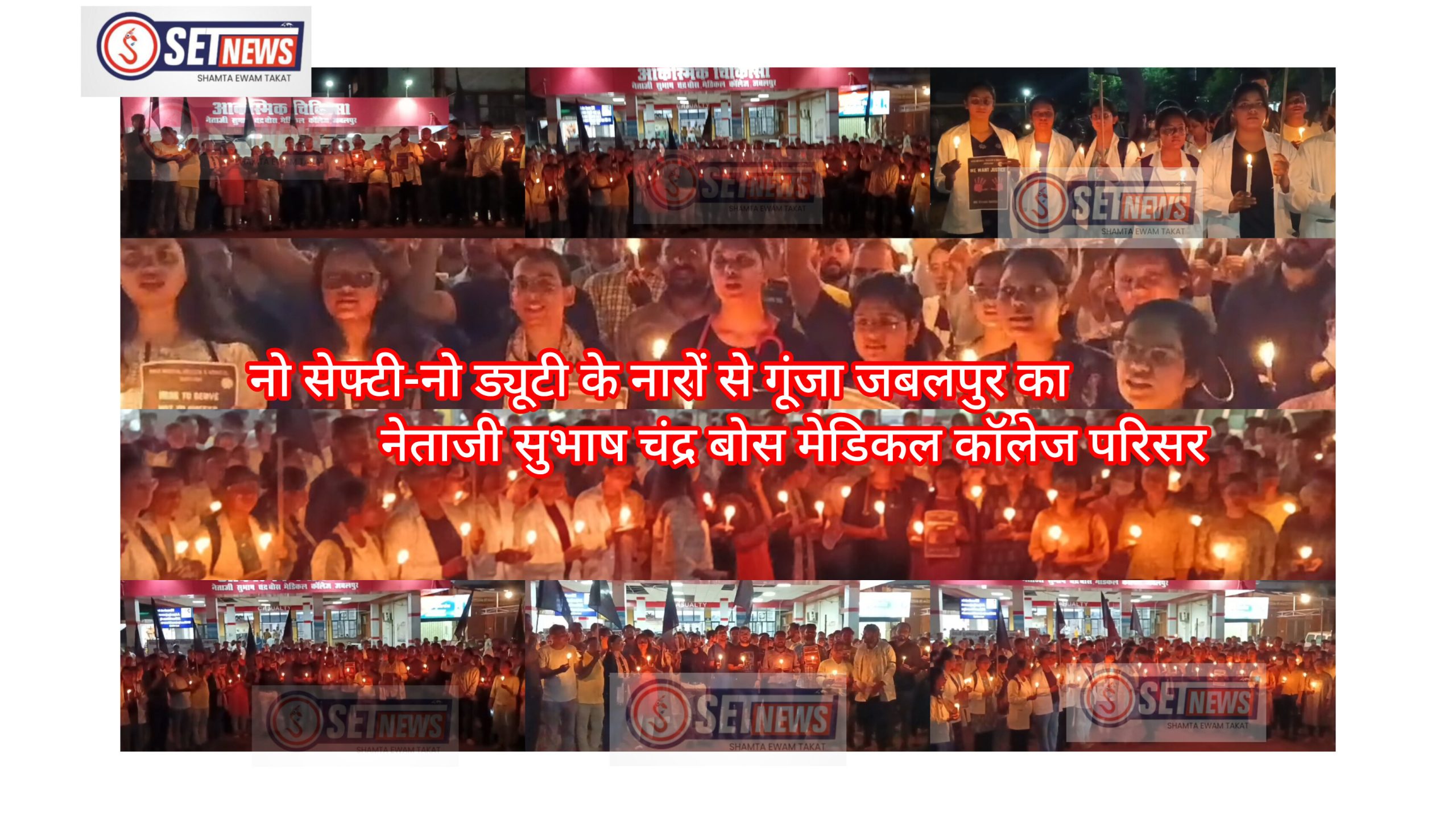 नो सेफ्टी-नो ड्यूटी के नारों से गूंजा जबलपुर का नेताजी सुभाष चंद्र बोस मेडिकल कॉलेज परिसर,हाथों में मोमबत्ती लेकर पीड़िता के लिए न्याय की उठाई आवाज,