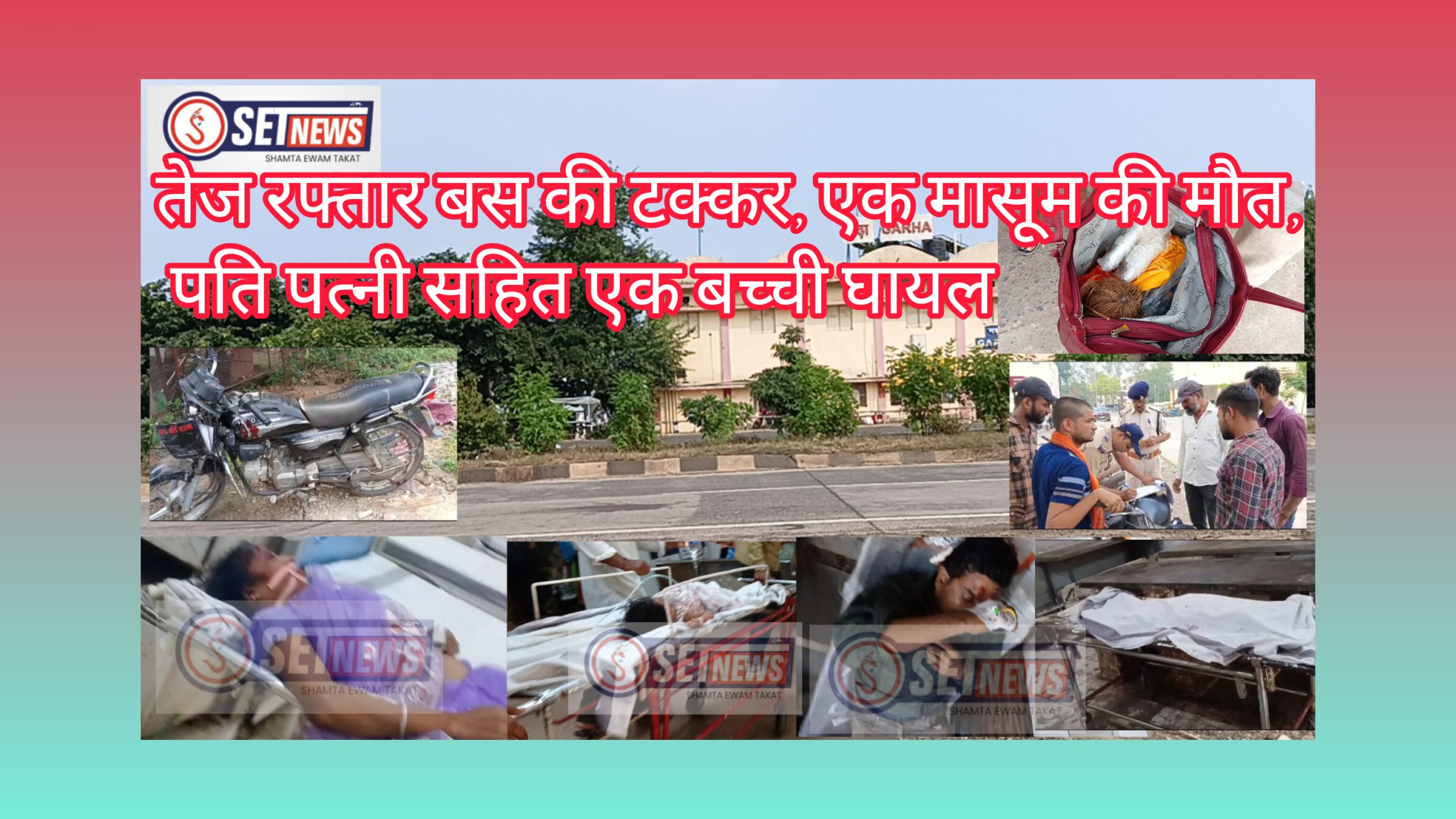 SET NEWS जबलपुर ! जबलपुर के तिलवारा थाना क्षेत्र अंतर्गत आने वाले गढ़ा रेलवे स्टेशन के सामने एक तेज रफ्तार बस में मोटरसाइकिल सवार पटेल परिवार को टक्कर मार दी इस घटना में 5 साल की मासूम की मौके पर ही मौत हो गई,वही माता-पिता सहित 2 साल की मासूम गंभीर रूप से घायल हुई है,मौके पर मौजूद लोगों ने घायलों को इलाज के लिए सवारी ऑटो से जबलपुर के नेताजी सुभाष चंद्र बोस मेडिकल अस्पताल में भर्ती कराया है, परिवार के लोगों से मिली जानकारी के मुताबिक मोहन पटेल चौकीताल थाना भेड़ाघाट निवासी अपनी पत्नी दो बच्चियों के साथ घर से भेड़ाघाट के पास त्रिपुर सुंदरी मंदिर जाने के लिए निकला हुआ था तभी नागपुर की तरफ से आ रही तेज रफ्तार बस ने उसकी बाइक को पीछे से टक्कर मार दी जहां टक्कर लगने के बाद पति-पत्नी सहित दो मासूम बच्चियों गंभीर रूप से घायल हो गई थी जहां 5 वर्षीय मासूम बच्ची ने मौके पर ही दम तोड़ दिया, इस घटना को अंजाम देने के बाद आरोपी बस चालक मौके से फरार हो गया, मौजूद लोगों ने घायलों को इलाज के लिए जबलपुर के मेडिकल अस्पताल में भर्ती कराया है घटना की जानकारी देने के बाद मौके पर पहुंची पुलिस ने मामला दर्ज करते हुए बस को जप्त कर लिया और बस चालक की तलाश में जुट गई है