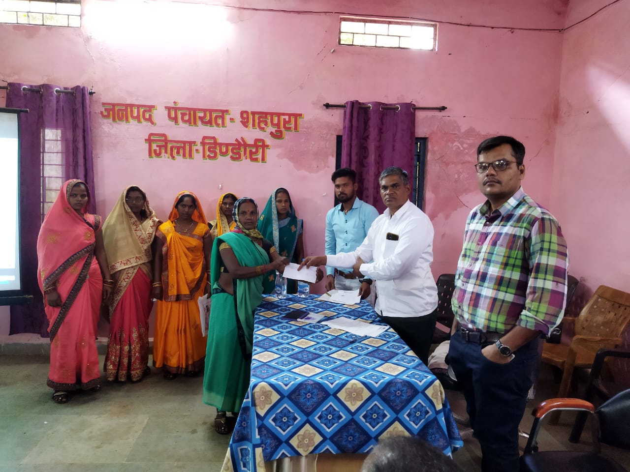 डिंडौरी, गणेश मरावी। लाड़ली बहना आवास योजना का शुभारम्भ जनपद पंचायत शहपुरा में मुख्यमंत्री शिवराज सिंह चौहान के लाइव प्रसारण के साथ किया गया एवं पात्र लाड़ली बहनों के आवेदन फॉर्म जनपद उपाध्यक्ष जितेन्द्र चंदेल जी एवं मुख्य कार्यपालन अधिकारी गणेश पांडे, पेसा मोबिलाइजर राम झारिया की उपस्थिति में भरवाया गया । इस कार्यक्रम में समस्त जनप्रतिनिधि अधिकारी कर्मचारी एवं ऑफिस स्टाफ उपस्थित रहे।