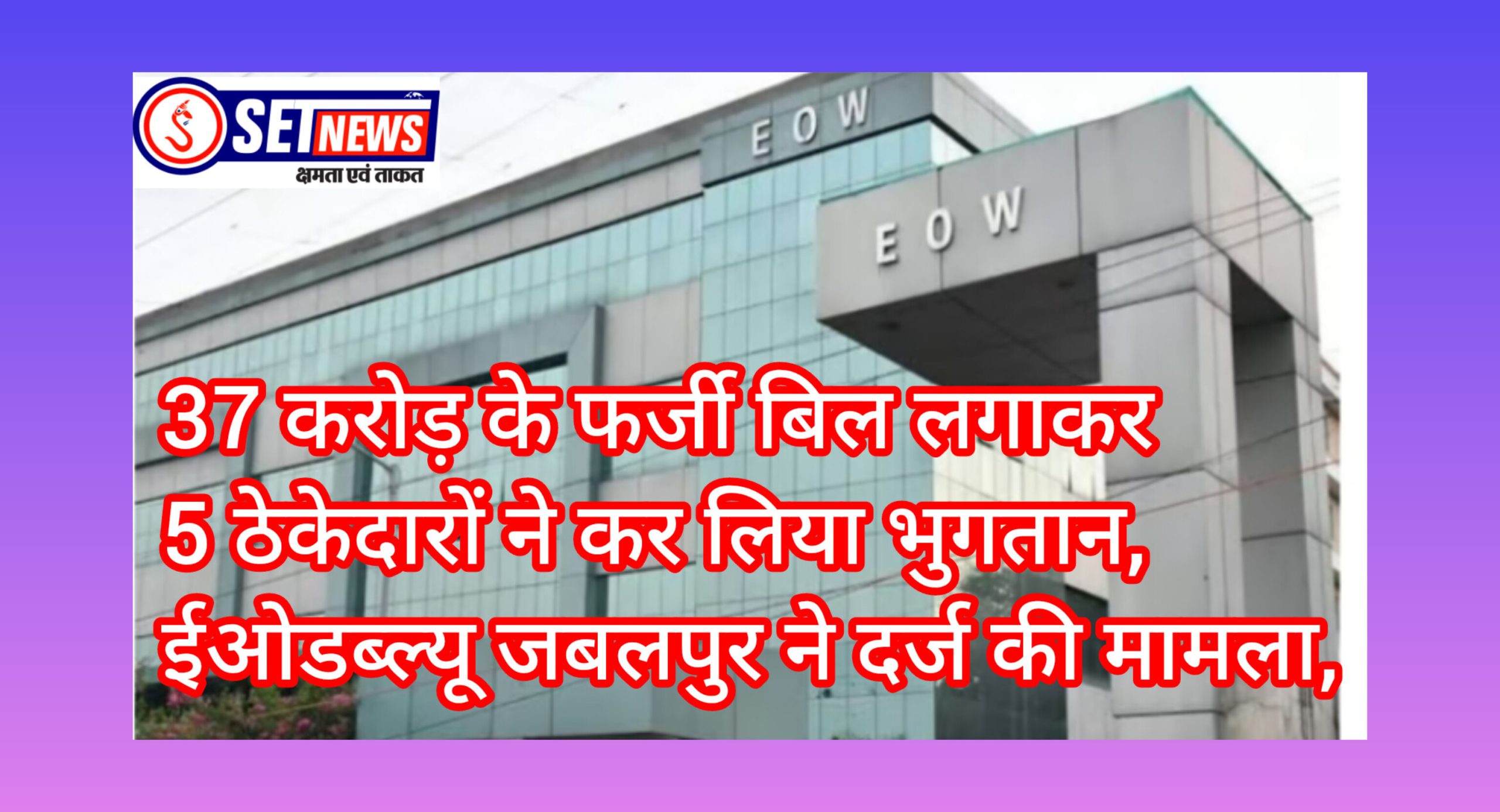 जबलपुर: 37 करोड़ के फर्जी बिल लगाकर 5 ठेकेदारों ने कर लिया भुगतान,ईओडब्ल्यू जबलपुर ने दर्ज की मामला,
