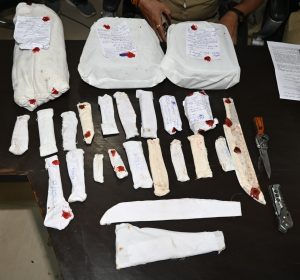 आदेश के परिपालन में अति. पुलिस अधीक्षक शहर आनंद कलादगी तथा नगर पुलिस अधीक्षक माढ़ोताल बी.एस.गोठरिया , के मार्ग दर्शन में थाना प्रभारी नीलेश दोहरे एवं टीम द्वारा आरोपी 1. हर्ष उर्फ डेविड पटेल 2. शेख हसन दोनो को 25 बटनदार चायना चाकू एंव नगदी 460 रूपये के साथ रंगे हाथ पकडे।