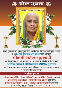 आईपीएस अधिकारी एवं पूर्व जबलपुर पुलिस कप्तान आदित्य प्रताप सिंह जी की पूज्य माता जी श्रीमती महेन्द्र कुमारी जी के निधन का समाचार अत्यंत दुःखद है। इस अपूरणीय क्षति से पूरा परिवार शोकाकुल है।