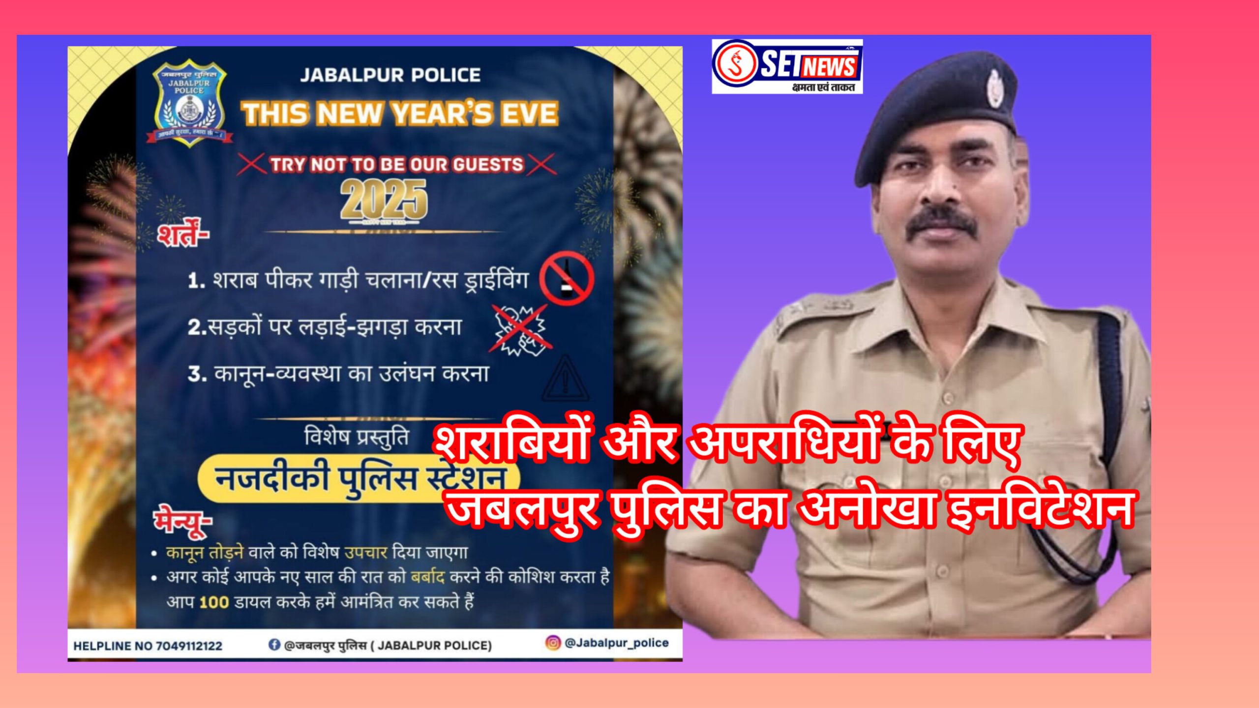 SET NEWS जबलपुर! नए साल के स्वागत के लिए जबलपुर पुलिस ने एक अनोखा आमंत्रण पत्र जारी किया है लेकिन…