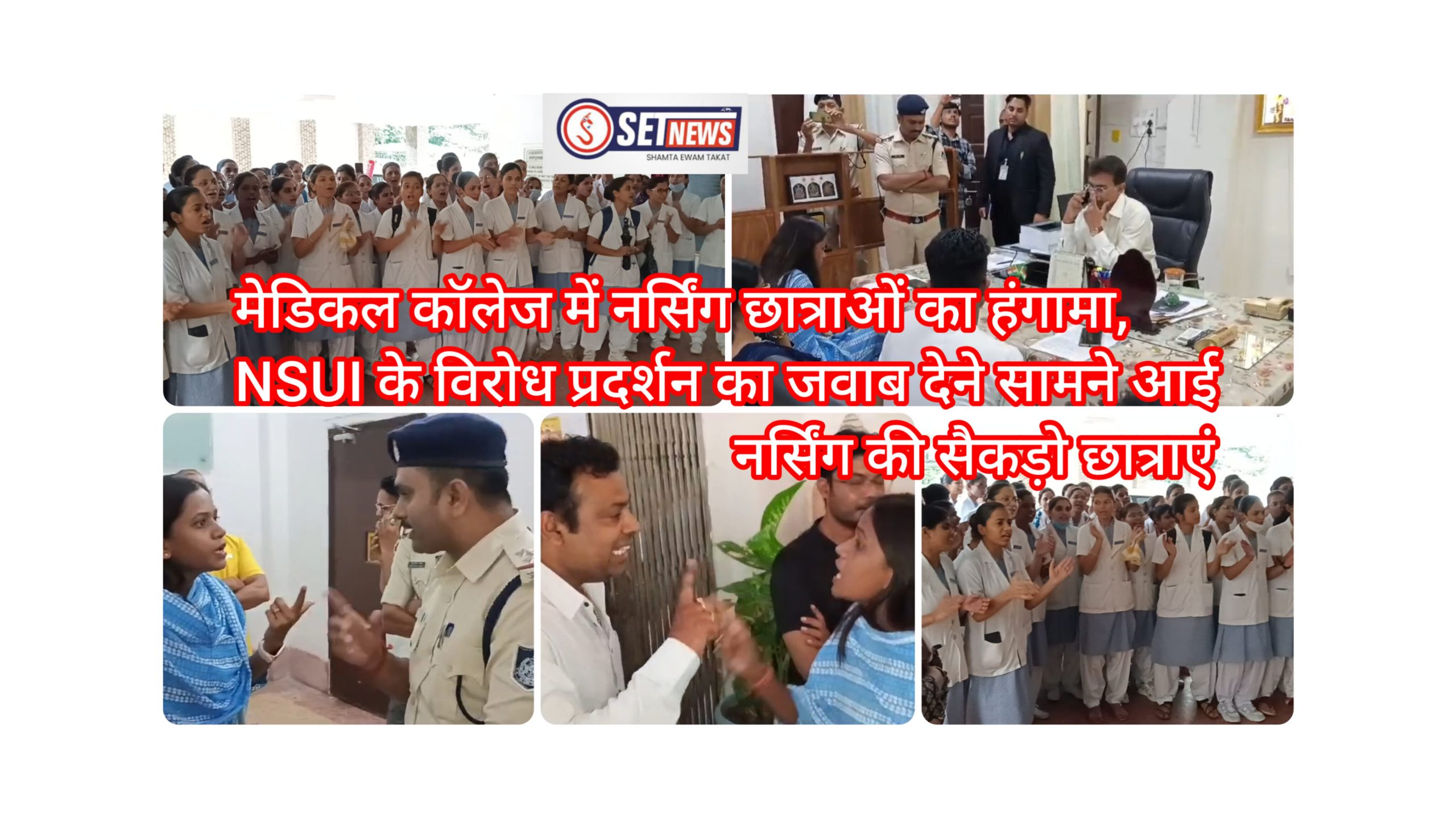 जबलपुर: मेडिकल कॉलेज में नर्सिंग छात्राओं का हंगामा,NSUI के विरोध प्रदर्शन का जवाब देने सामने आई नर्सिंग की सैकड़ो छात्राएं
