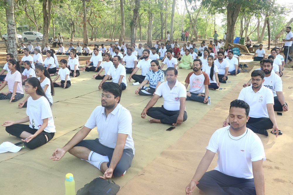 जबलपुर # डुमना नेचर पार्क में किया गया पृथ्वी तत्व पर आधारित योग क्रियाओं का अभ्यास
