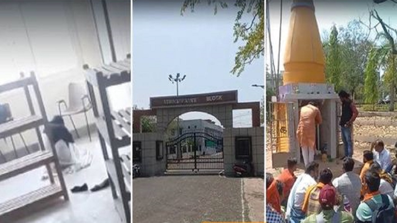 दमोह की छात्रा एजुकेशन डिपार्टमेंट से B.Sc B.ed कर रही है। इस साल उसका फाइनल ईयर है। छात्रा हिजाब में आती है। शुक्रवार दोपहर वह क्लास रूम के अंदर नमाज पढ़ रही थी। किसी ने VIDEO बनाकर वायरल कर दिया। शनिवार को विश्व हिंदू परिषद के कार्यकर्ता विश्वविद्यालय पहुंचे और विरोध करते हुए नारेबाजी की। इतना ही नहीं विश्वविद्यालय में बने शंकर मंदिर में हनुमान चालीसा का पाठ भी किया।